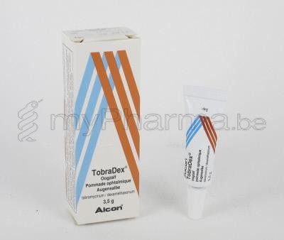 De werkzame stoffen zijn tobramycine 3 mg/g en dexamethasone 1 mg/g.